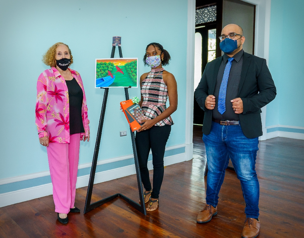 Ms Adalia Lisk with “A True Queen” won the 11-18 age group category with a creative interpretation of the architectural design of Queen’s Royal College.