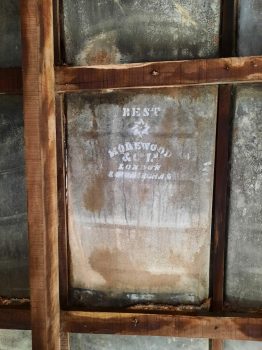 The roof is made from tin and the original tiles, which were shipped from England, are still in use. 60 years ago, the tiles were repositioned to address the leaks and the original wood was changed as it was termite infested. It was replaced with mahogany from the estate. The roof is currently leaking.