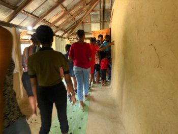 Video of Mr. Reaz Khan leepaying a wall inside the Mud House