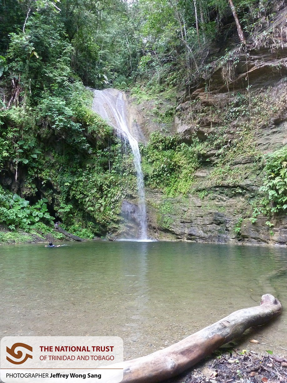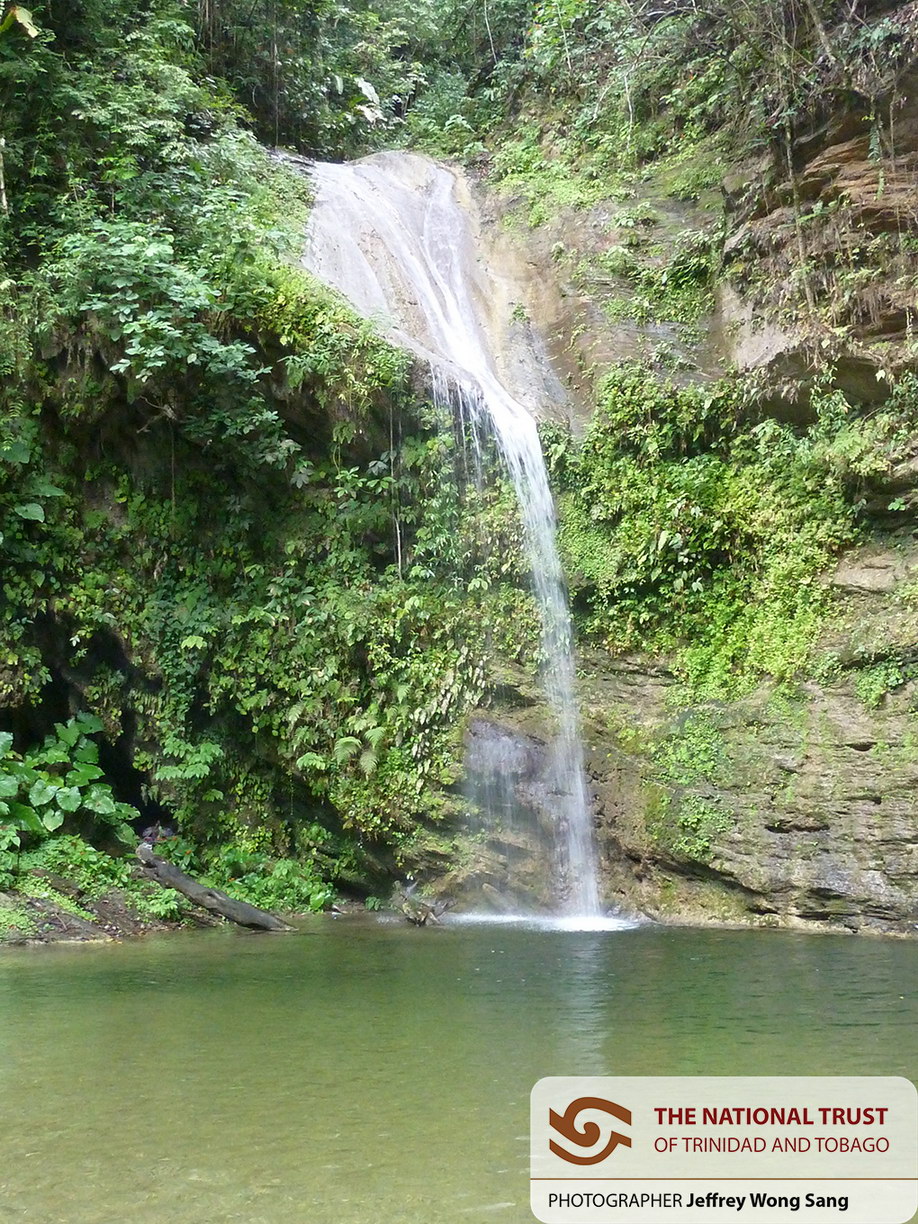 Blue Basin Waterfalls lies on the eastern side of the Diego Martin Valley. Its source is in Meyah, a secluded area in the Paramin village. The Meyah river courses through the former Cameron Valley cacao estate, meanders through some huge gullies, and cascades down three falls which only a few have the courage to venture: White Hole (Slip and Slide), Coffin Hole, and Tsou Falls in that order. The river then descends to the Blue Basin waterfall where a gush of water fills the basin dug out by its force. The waterfall is about 50 feet high and fills up a turquoise-coloured pool about 20 feet deep. Despite its depth, there is a gradual increase in deepness from the bank making it accessible to non-swimmers. Further downhill, there is another pool that connects to the Blue Basin waterfall called D’eau Bleu.