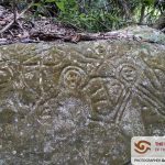 The Caurita Petroglyph or Caurita Stone is a 6ft high by 8ft wide boulder baring carvings that were made by the First People of Trinidad. It is also the only confirmed pre-Columbian petroglyph found in Trinidad. Rock art in the form of petroglyphs (carved images) and pictographs (painted design) is found on a number of different rock surfaces throughout the Caribbean. Amerindians executed most of this substantial body of visual expression. The Caribbean contains three categories of rock art: painted images and carved designs on rock surfaces, and rock sculptures. Rock Art was executed during three broadly defined periods: the Preceramic (7500/4000-400/250 BC), the Ceramic (400/250 BC – AD 1500) and the early historic (AD 1500).