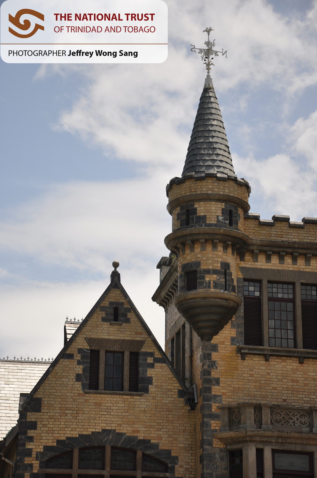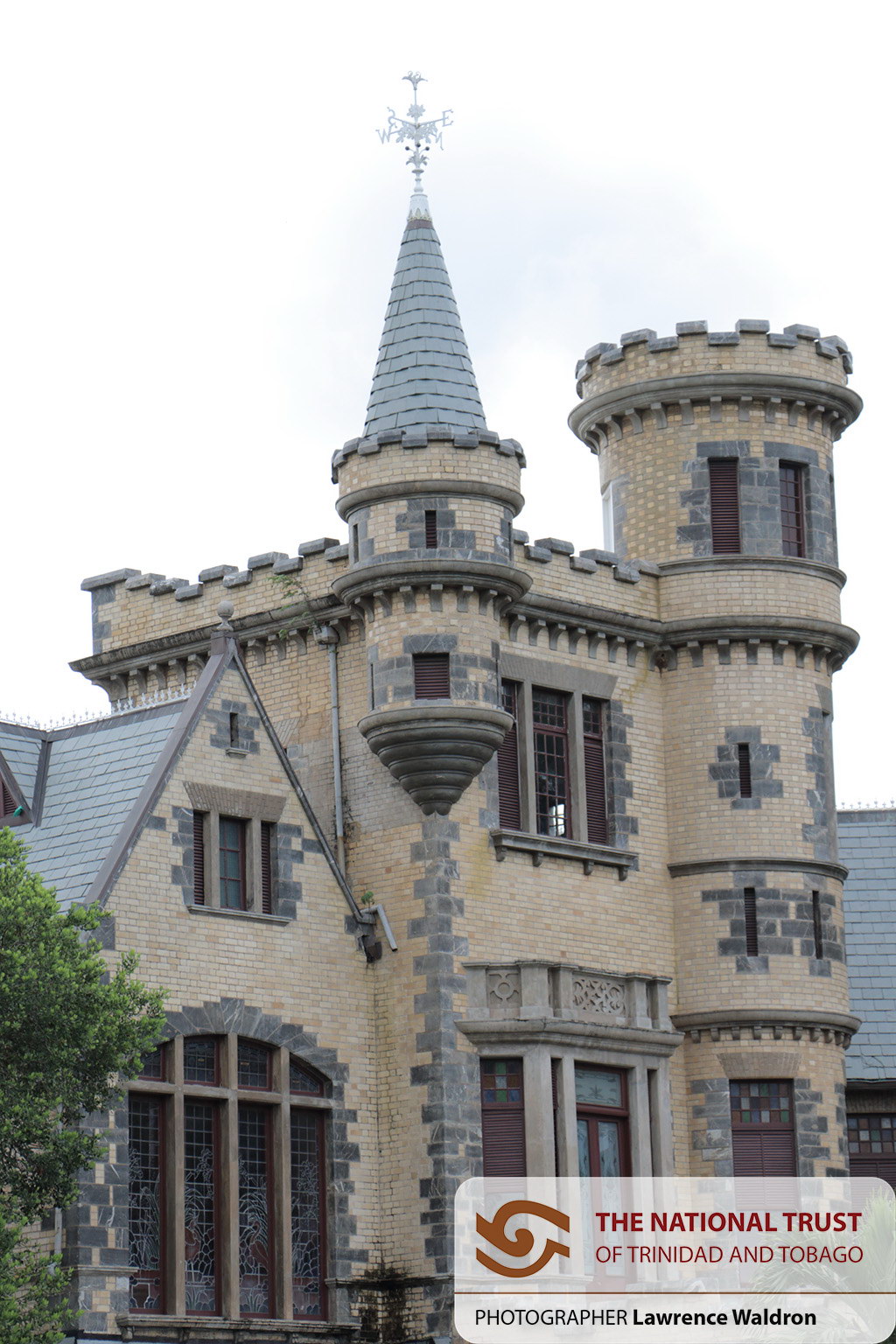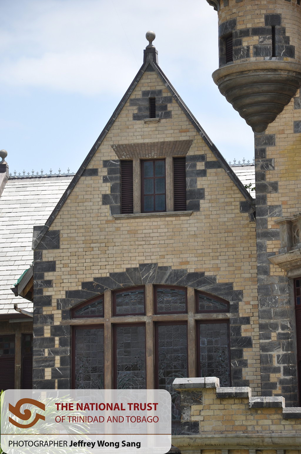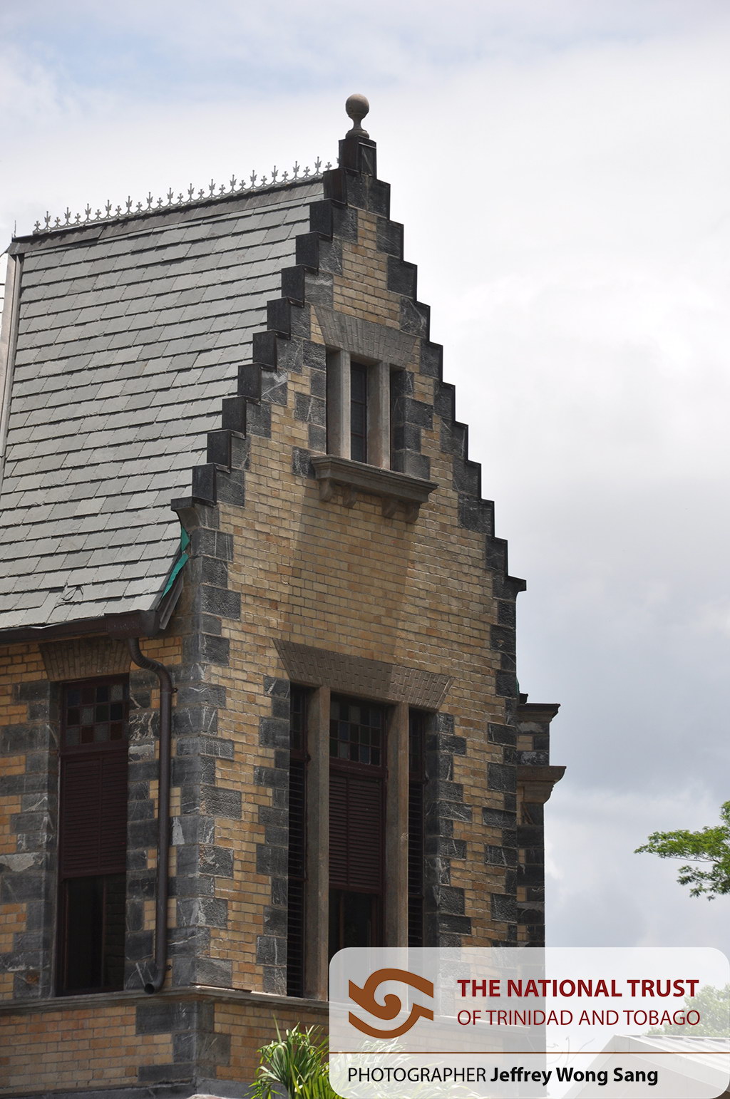 Built by Charles Fourier Stollmeyer, Killarney was the first house to be constructed in the St Clair subdivision, established on lands which had previously been used as the government stock farm. Construction started in 1902 and was completed in 1904. The architect of this elaborate structure was a Scotsman, Robert Gillies, from the firm Taylor and Gillies. Described to be Scottish Baronial in architectural style, it is said that the structure of the house was patterned after a wing of Balmoral Castle in Scotland. The structure is built of Laventille quarry stone with accents of brick and decorative cast iron pillars from Scotland. The interior of the downstairs floor with its beautiful stained glass accent window, the wooden floors, the wrap around balcony and the hand-crafted staircase is warm and inviting as contrasted to its more austere exterior. The kitchen though external, was connected to the house by an open corridor. The stables and workers quarters were also constructed at the same time.