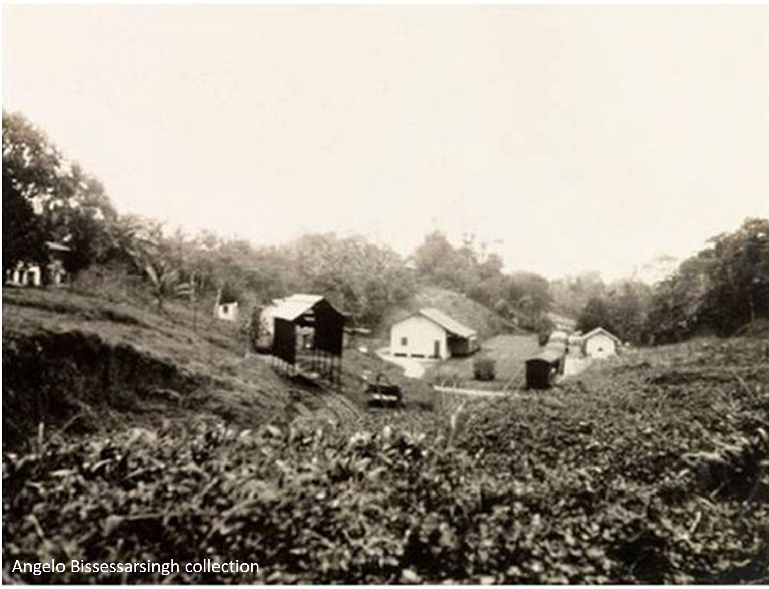 Courtesy of the Angelo Bissessarsingh collection: Siparia railway station from the southern ridge above. There was a locomotive turntable below left out of view in the cutting. Trains did not call here until 1 April 1914, some five and a half after the opening of the new line.