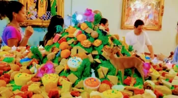 Mt. Govardhan made from edible Indian sweets “Meethi” made by ISKCON Movement