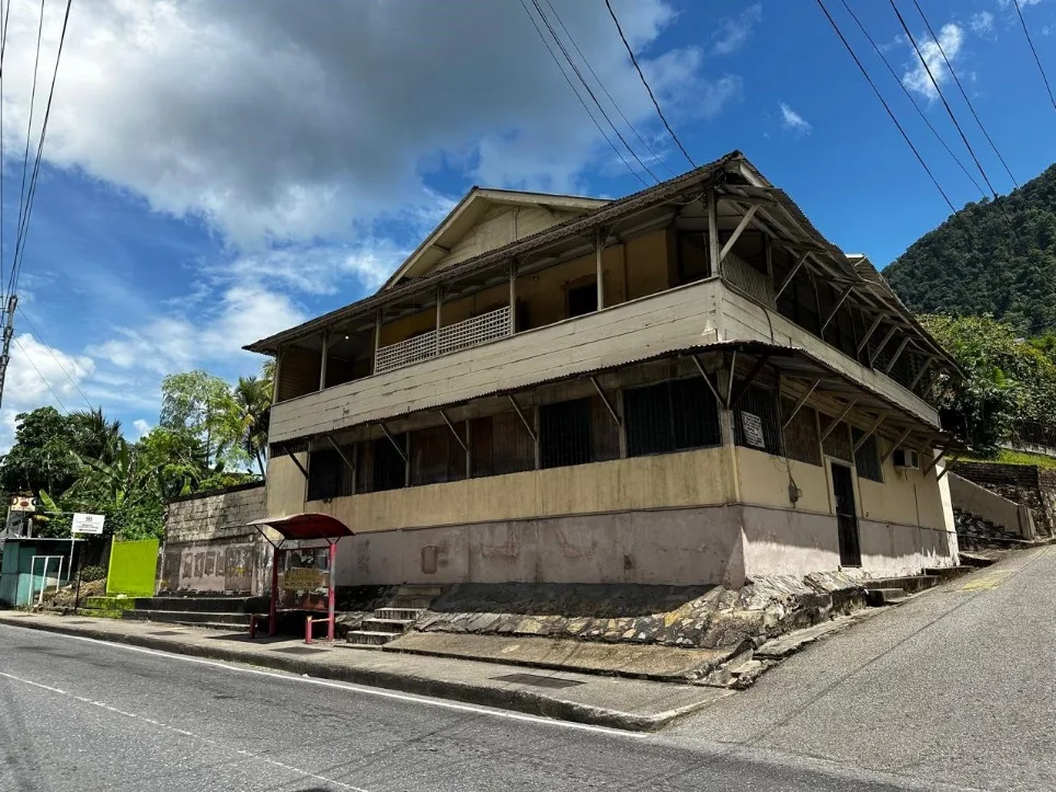This double-story, mixed-use building is over 100 years old and sits on the roadside on Saddle Road, just down the hill from our Lady of Lourdes RC Church in Maraval. The building is a classic example of Trinidadian vernacular architecture, with its open veranda, fretwork, jali and other ornamentation. The structure is primarily made of river stone and lime at the lower level and timber on the upper level. Some of the interior walls, which are understood to be from the original structure, are made of rammed earth construction of earth and clay from the site. The building has been vacant for several years, however the church is in the process of planning the restoration in order to reuse it as the parish offices and priest’s home.